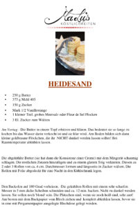 Da wären zum einen die HEIDESAND Plätzchen. Zart und ’sandig‘ sind sie und einfach herzustellen. Kaum einer kann sich ihrem buttrigen Geschmack entziehen. Und nicht nur das: Unser Rezept wird mit einem Löffelchen Fleur de Sel oder grobem Meersalz gewürzt. Gerade so viel, dass es zum Schluss ein salziges Blitzen auf der Zunge entfacht. Unwiderstehlich!