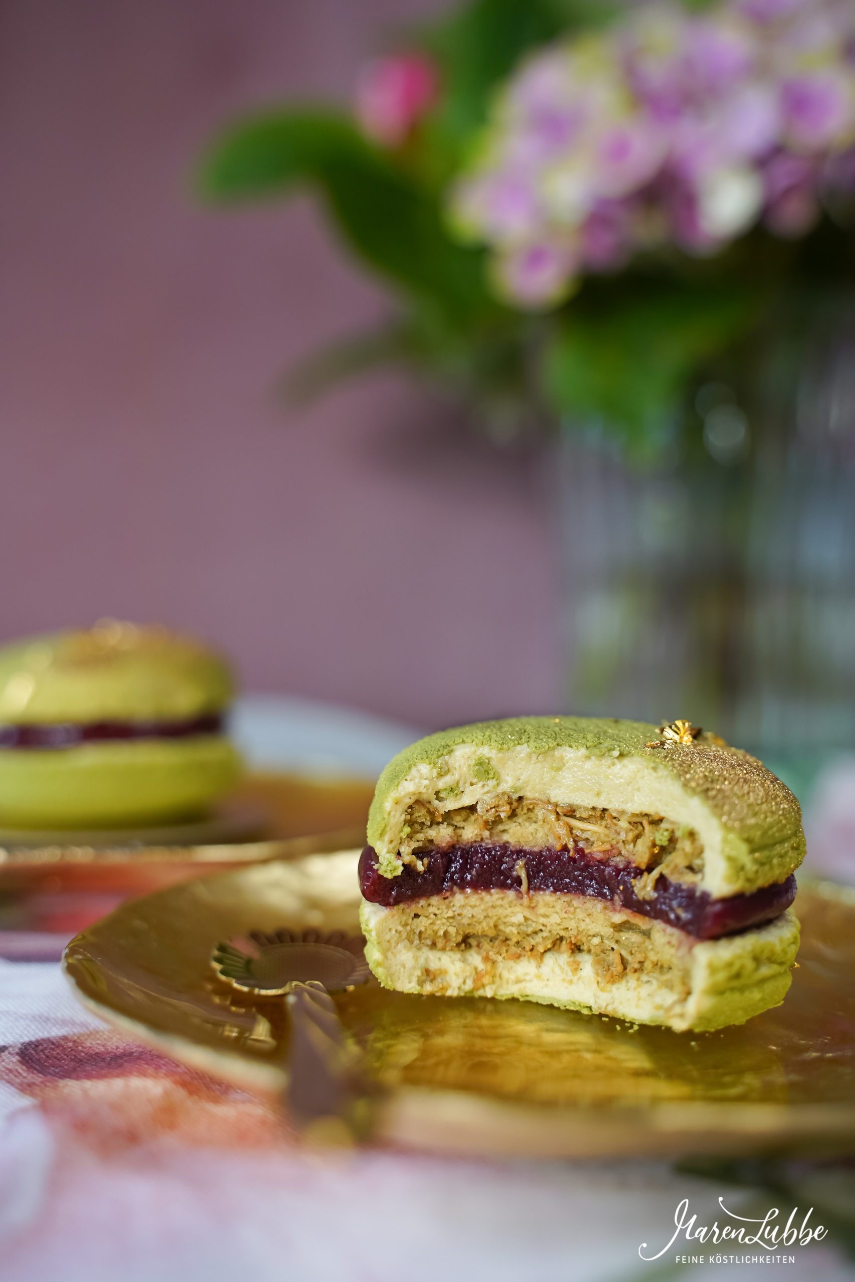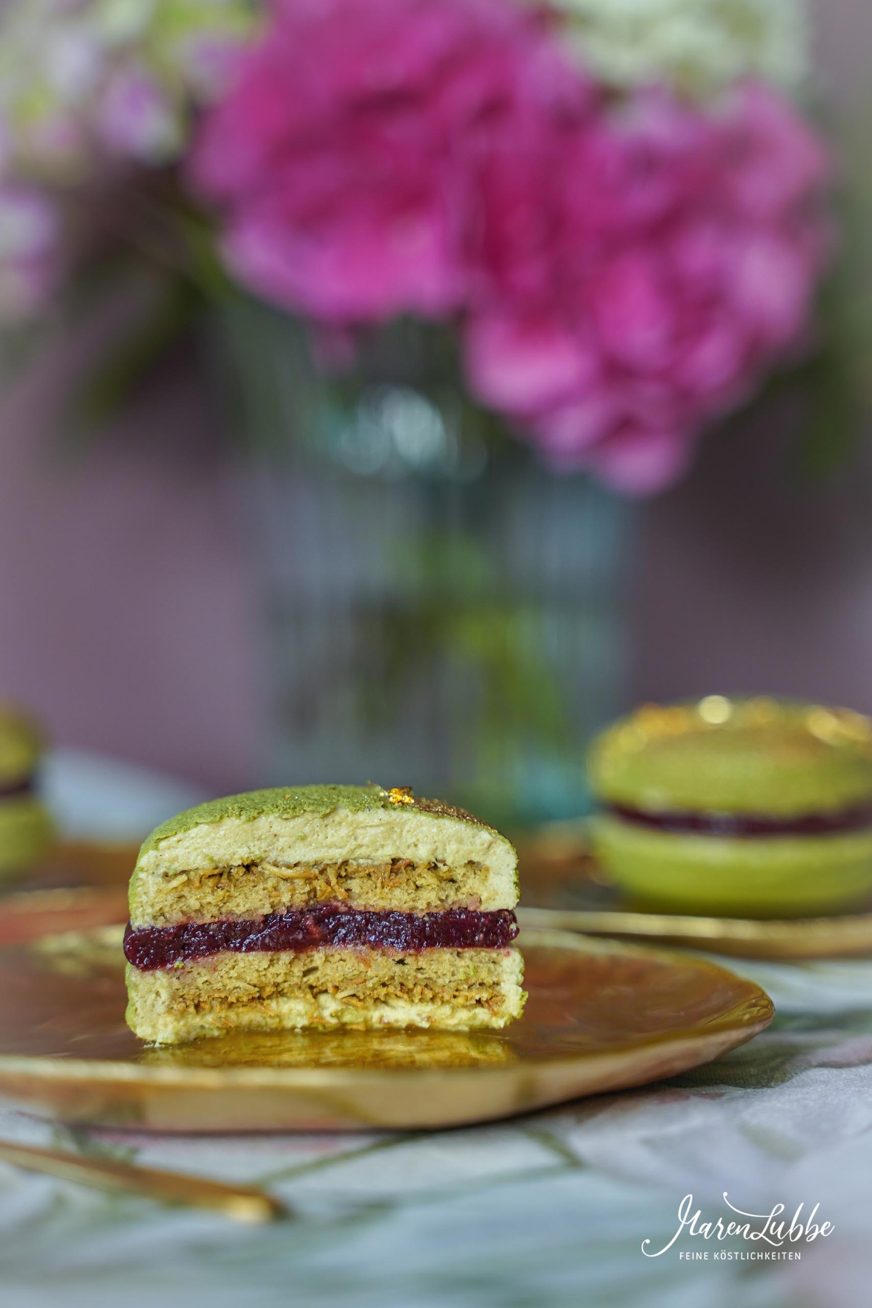 Unten im Beitrag findet ihr die Fotos der Pistazien Macaron-Törtchen!