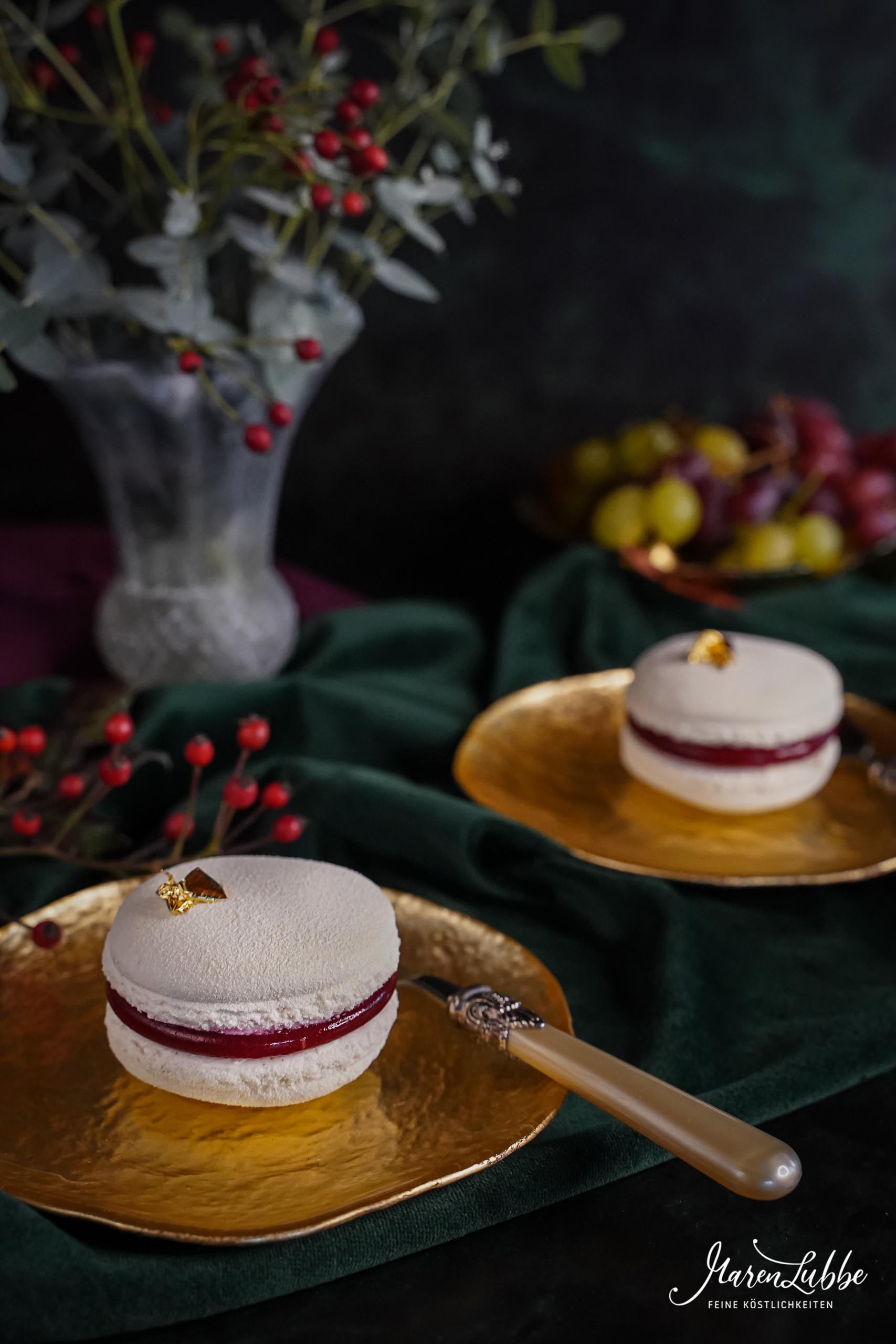 Zweierlei Macaron-Törtchen mit aromatischer Fruchtfüllung