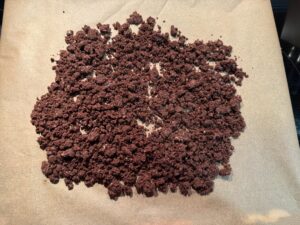 Die Butter mit dem Zucker verrühren. Danach die restlichen Zutaten ergänzen und zu Streuseln verarbeiten. Im Backofen bei 180 Grad Ober-/ Unterhitze ca. 10-15 Minuten backen. Der Crumble kann in einer Metalldose bis zur Verwendung aufbewahrt werden.