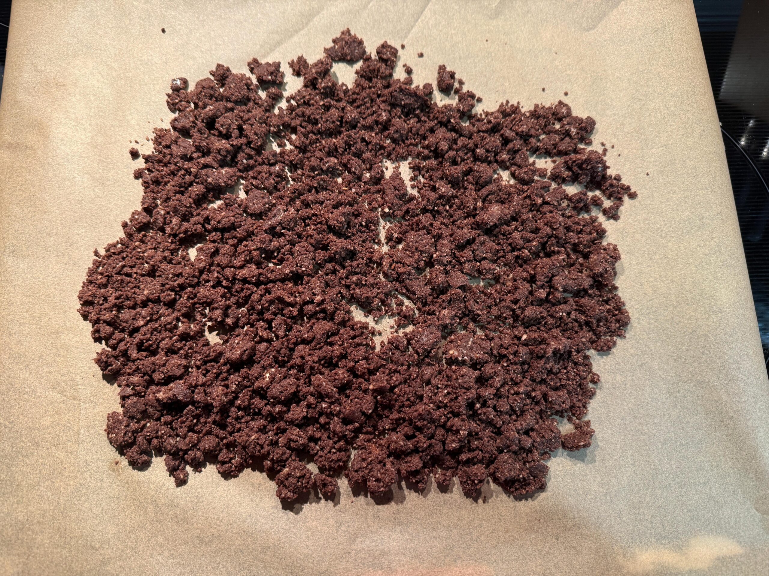 Das Dekor sollte möglichst kurz vor dem Servieren aufgebracht werden, damit der Crumble knusprig ist.