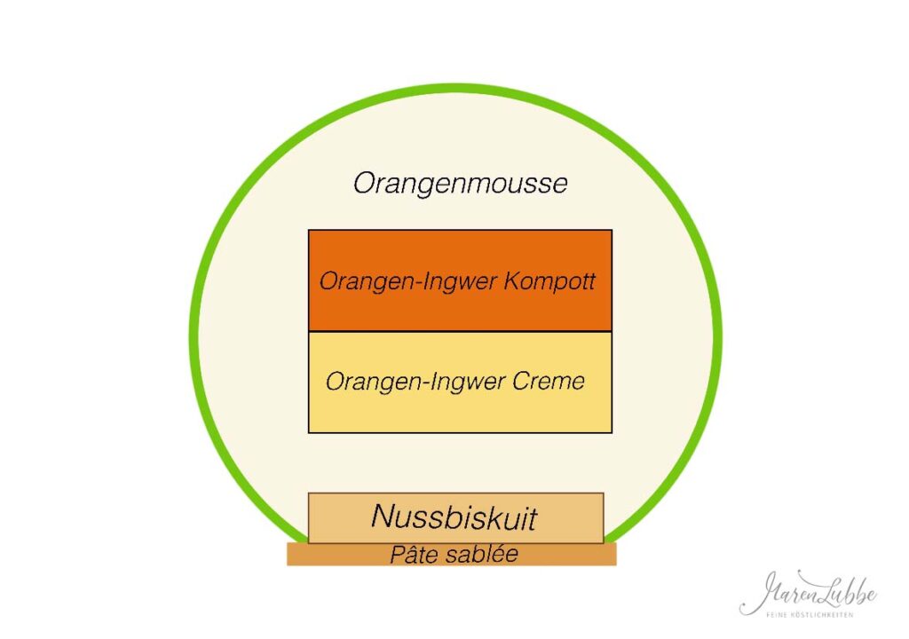 Was die inneren Werte der Törtchen angeht, habe ich mich für Orangen entschieden, die haben immer noch Hochsaison, und mit Ingwer kombiniert unterstützt man noch einmal zusätzlich ihr tolles Aroma, wie ich finde. Sie symbolisieren gewissermaßen den Winteranteil der Törtchen.