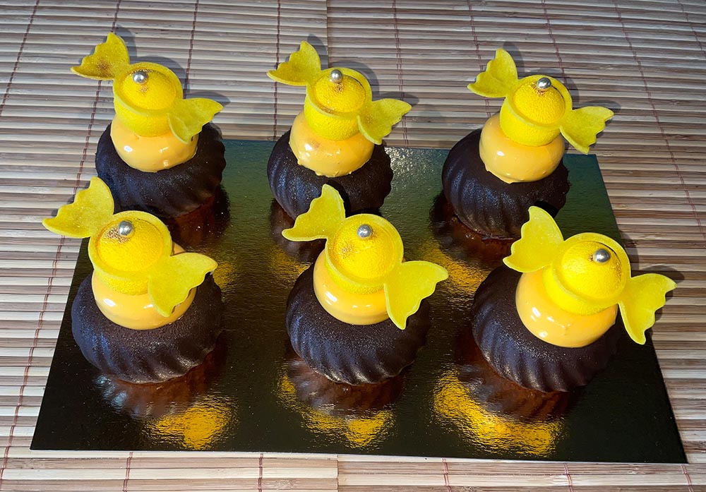 Cheesecake „Emmentaler Style“ von Inga C. Mohn-Marzipan Törtchen von Natalija A. Fleur d’Ivoire von Anke B. Mousse au chocolat Törtchen mit Timut von Basti E.