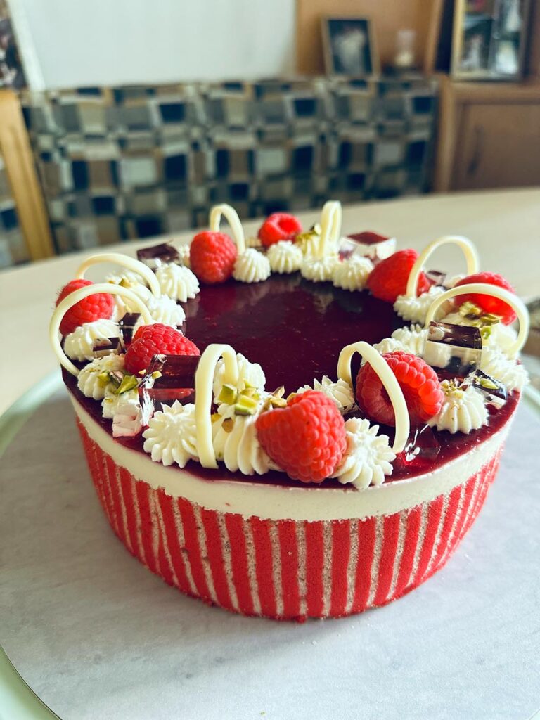 Johannisbeer-Mascarpone Torte von Vicky E. Himbeer-Lychee-Rosen Torte von Elisabeth S. Schokoladentarte mit Pistazie & Kokos von Inga C.